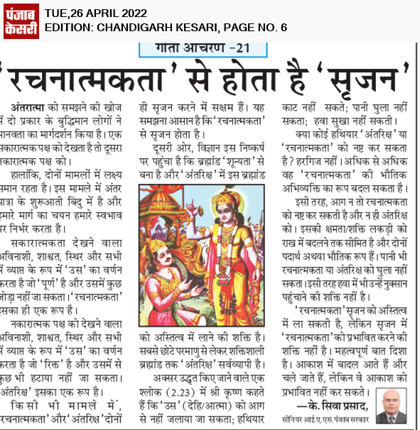 पानी भी रचनात्मकता या अंतरिक्ष को घुला नहीं सकता । इसी तरह हवा में भी उन्हें नुकसान पहुंचाने की शक्ति नहीं है।